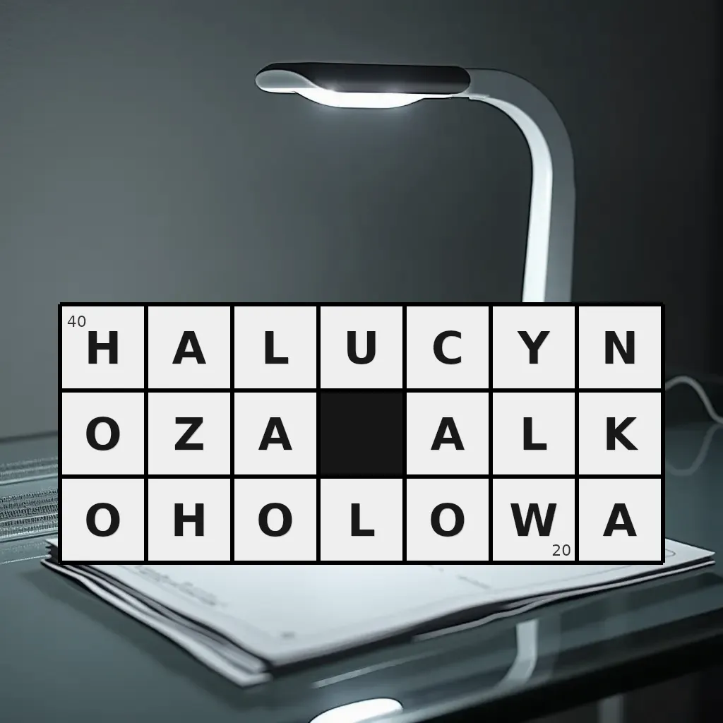 Słowo „halucynoza alkoholowa” ma 20 znaków (bez spacji i łączników).