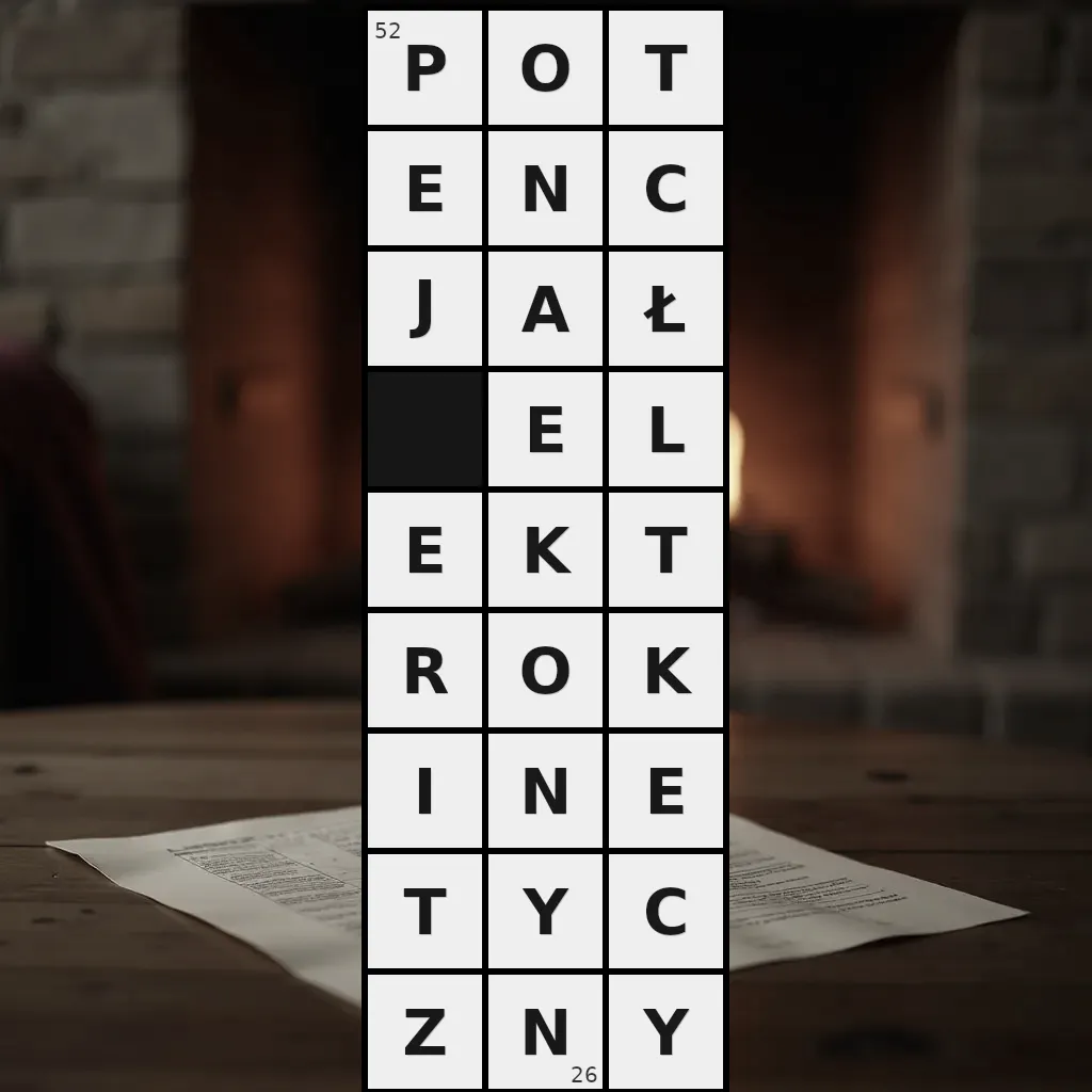 Słowo „potencjał elektrokinetyczny” ma 26 znaków (bez spacji i łączników).
