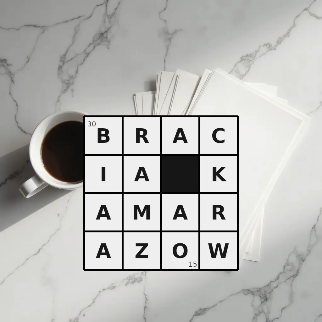 Zawiera litery: A, A, A, A, A, B, C, I, K, M, O, R, R, W, Z