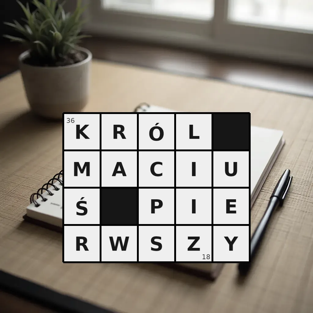 Słowo „król maciuś pierwszy” ma 18 znaków (bez spacji i łączników).