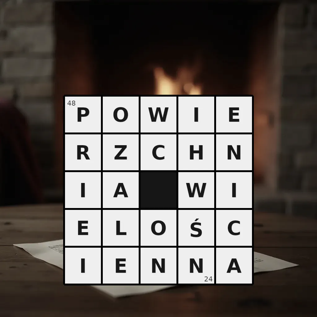 Słowo „powierzchnia wielościenna” ma 24 znaki (bez spacji i łączników).