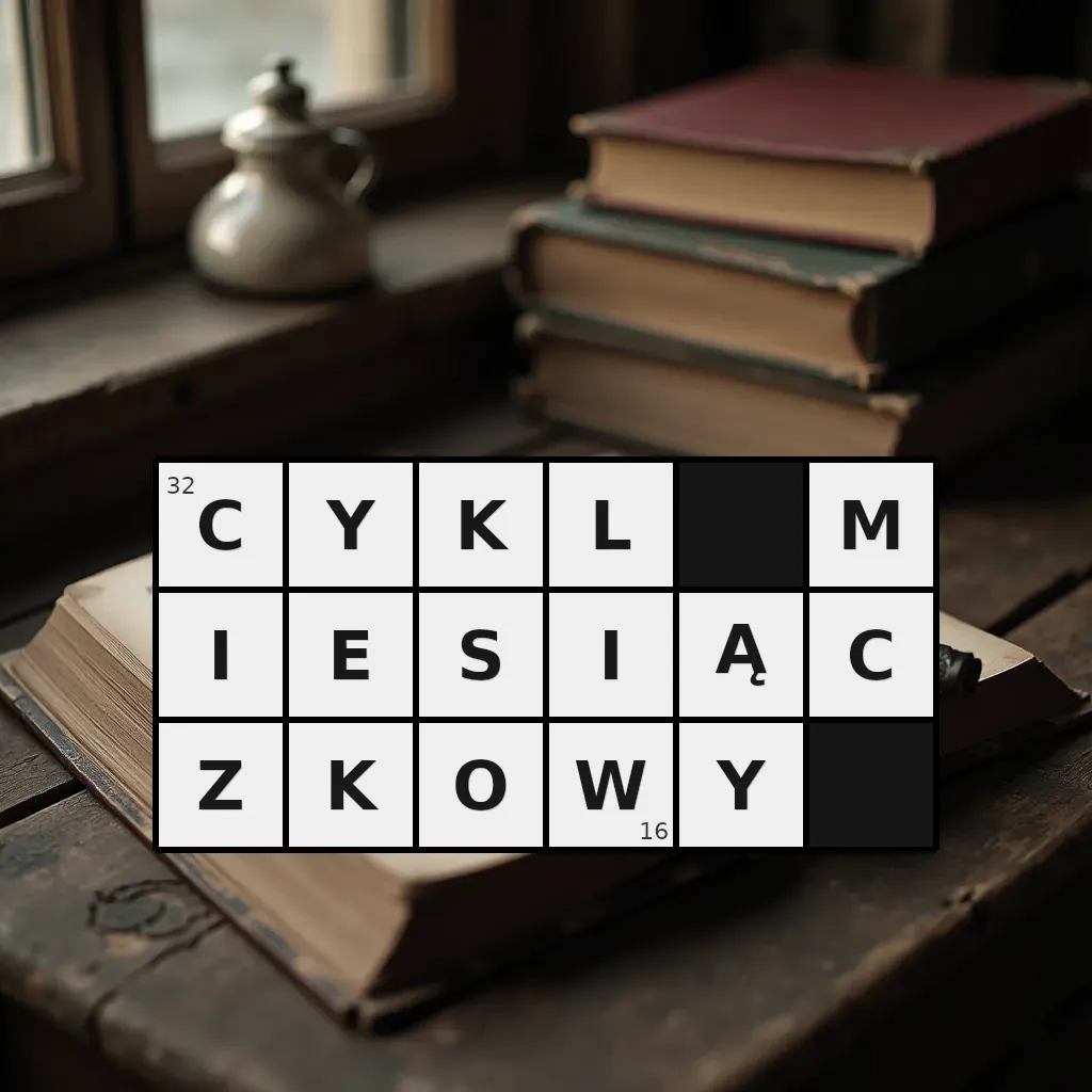 Słowo „cykl miesiączkowy” ma 16 znaków (bez spacji i łączników).