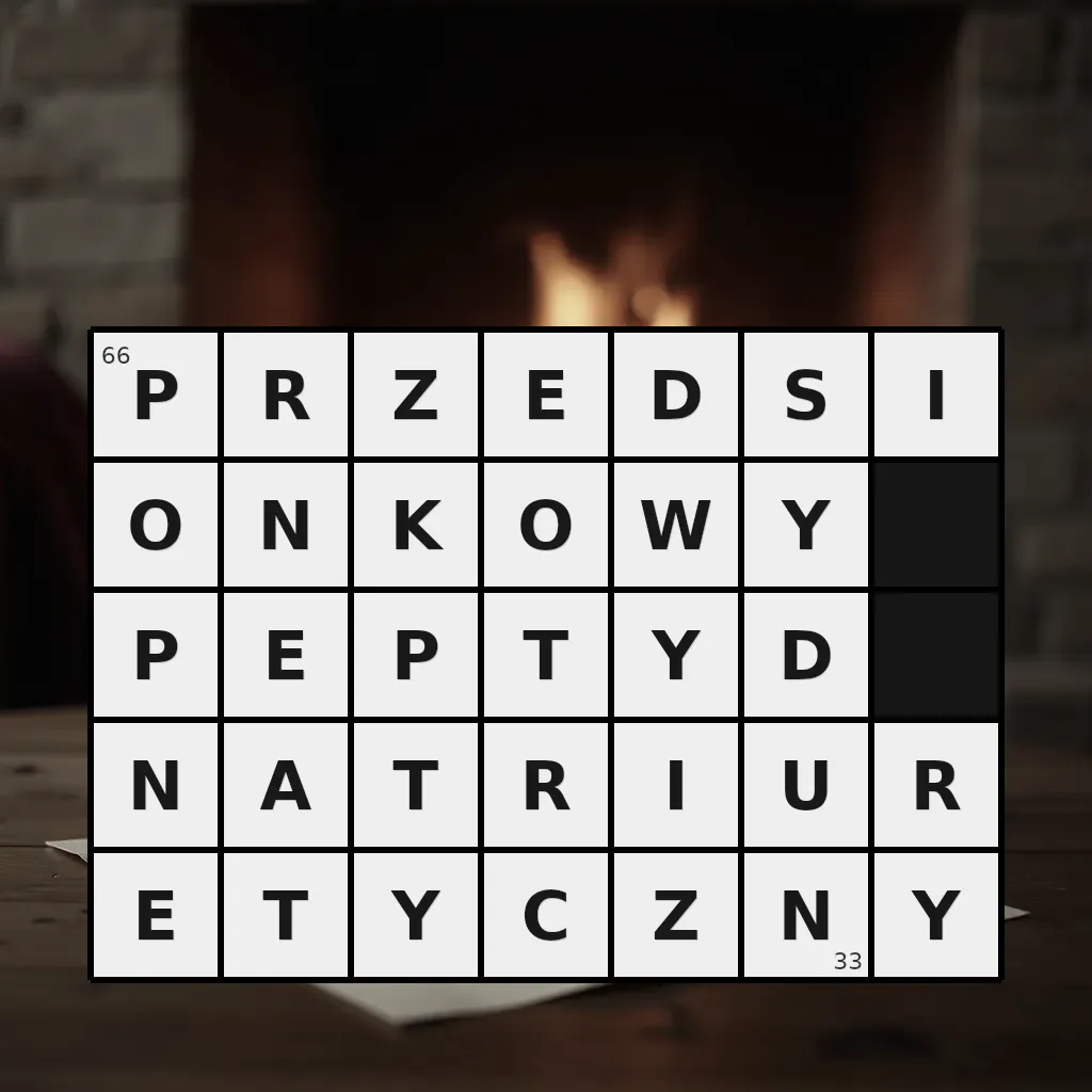 Słowo „przedsionkowy peptyd natriuretyczny” ma 33 znaki (bez spacji i łączników).