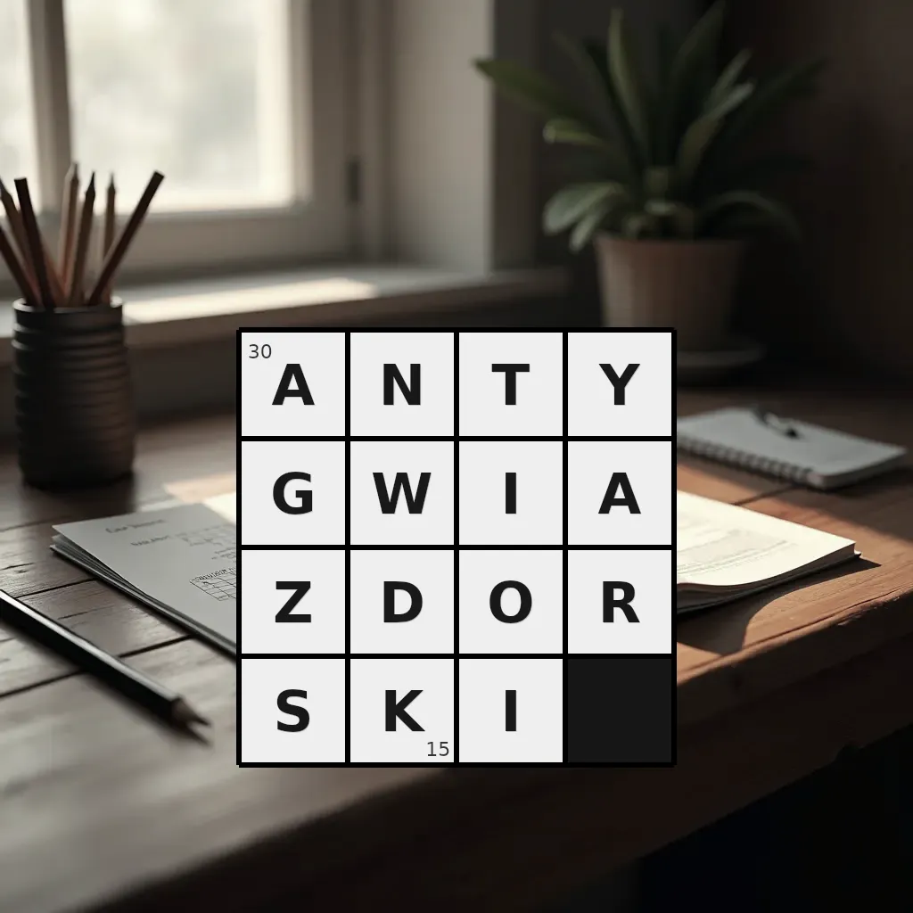 Zawiera litery: A, A, D, G, I, I, K, N, O, R, S, T, W, Y, Z