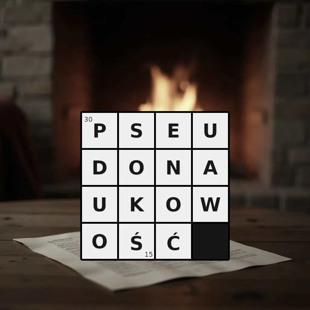 Słowo „pseudonaukowość” ma 15 znaków (bez spacji i łączników).