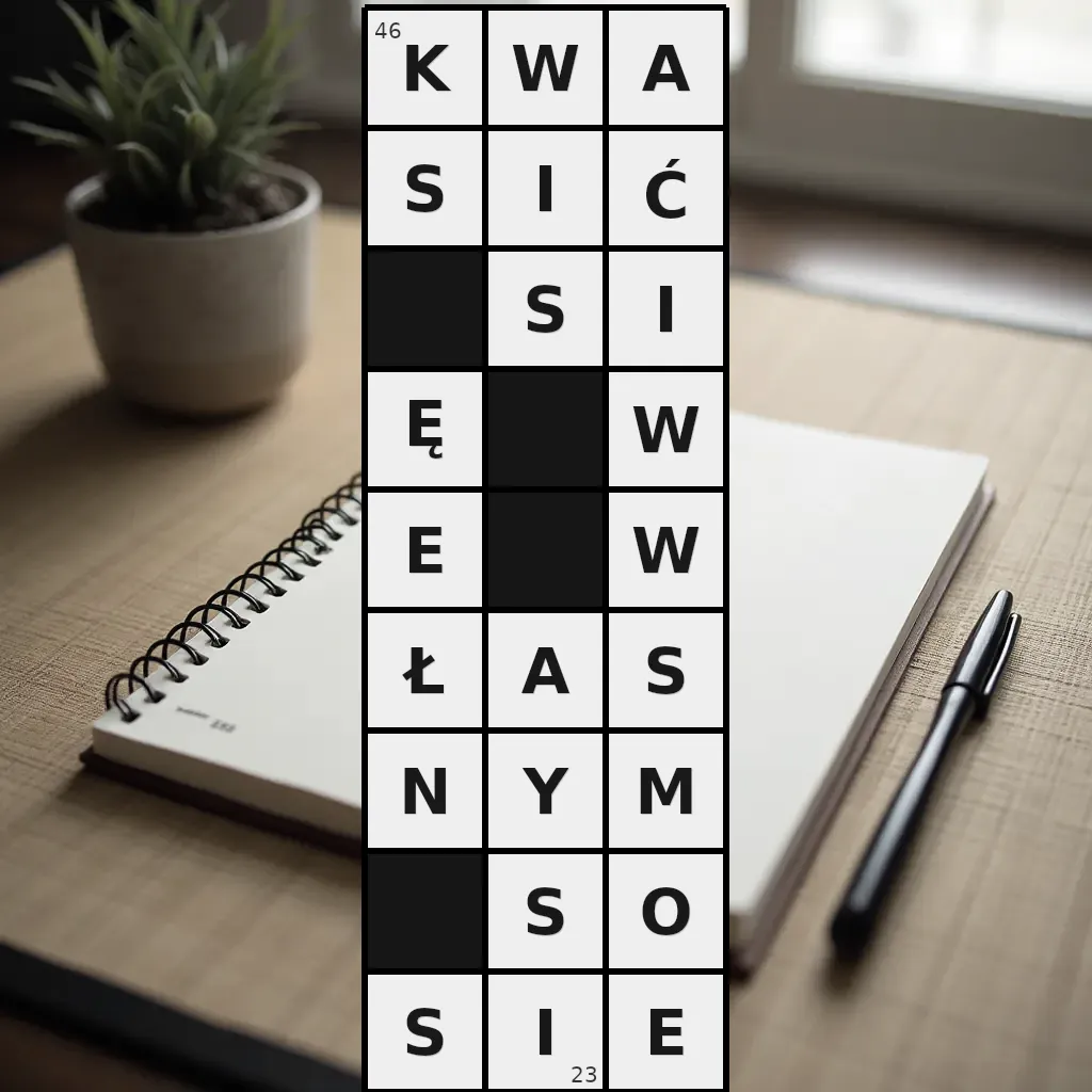 Słowo „kwasić się we własnym sosie” ma 23 znaki (bez spacji i łączników).