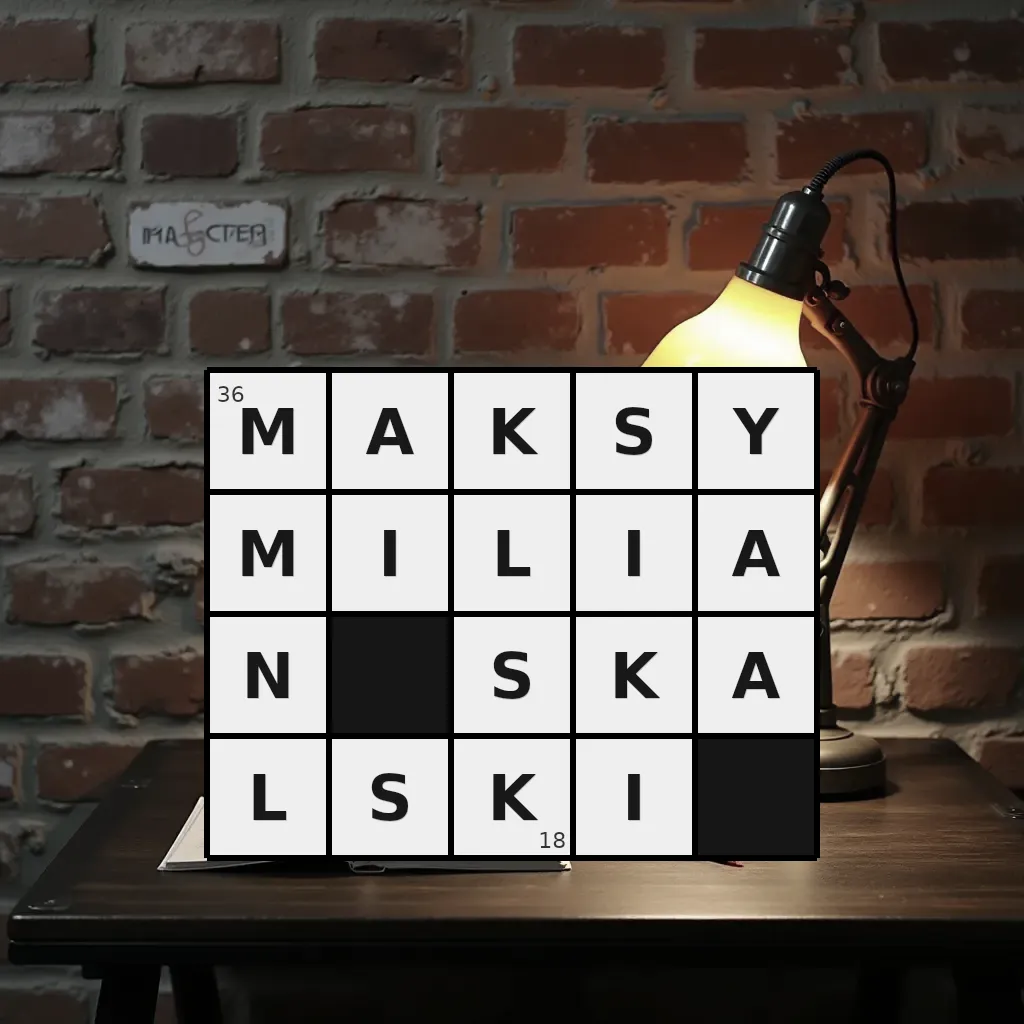 Słowo „maksymilian skalski” ma 18 znaków (bez spacji i łączników).
