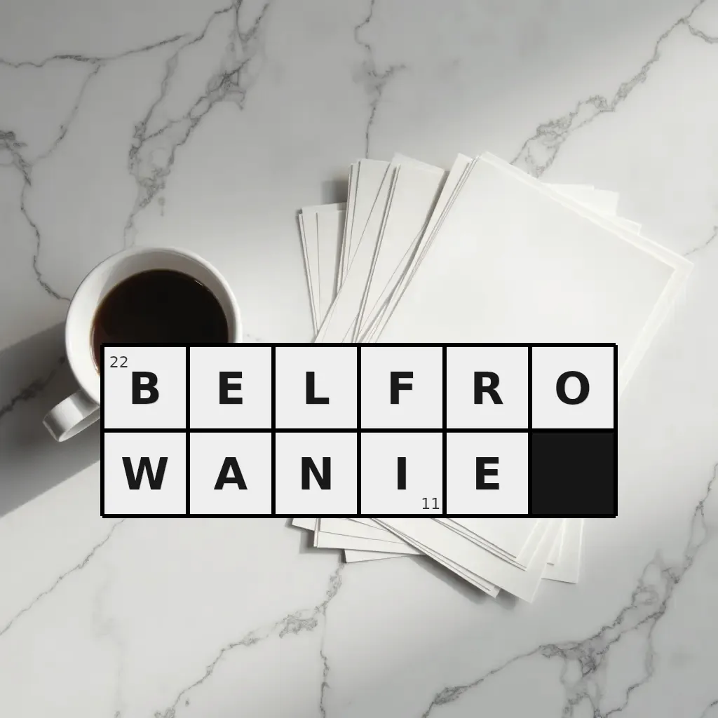 Zawiera litery: A, B, E, E, F, I, L, N, O, R, W