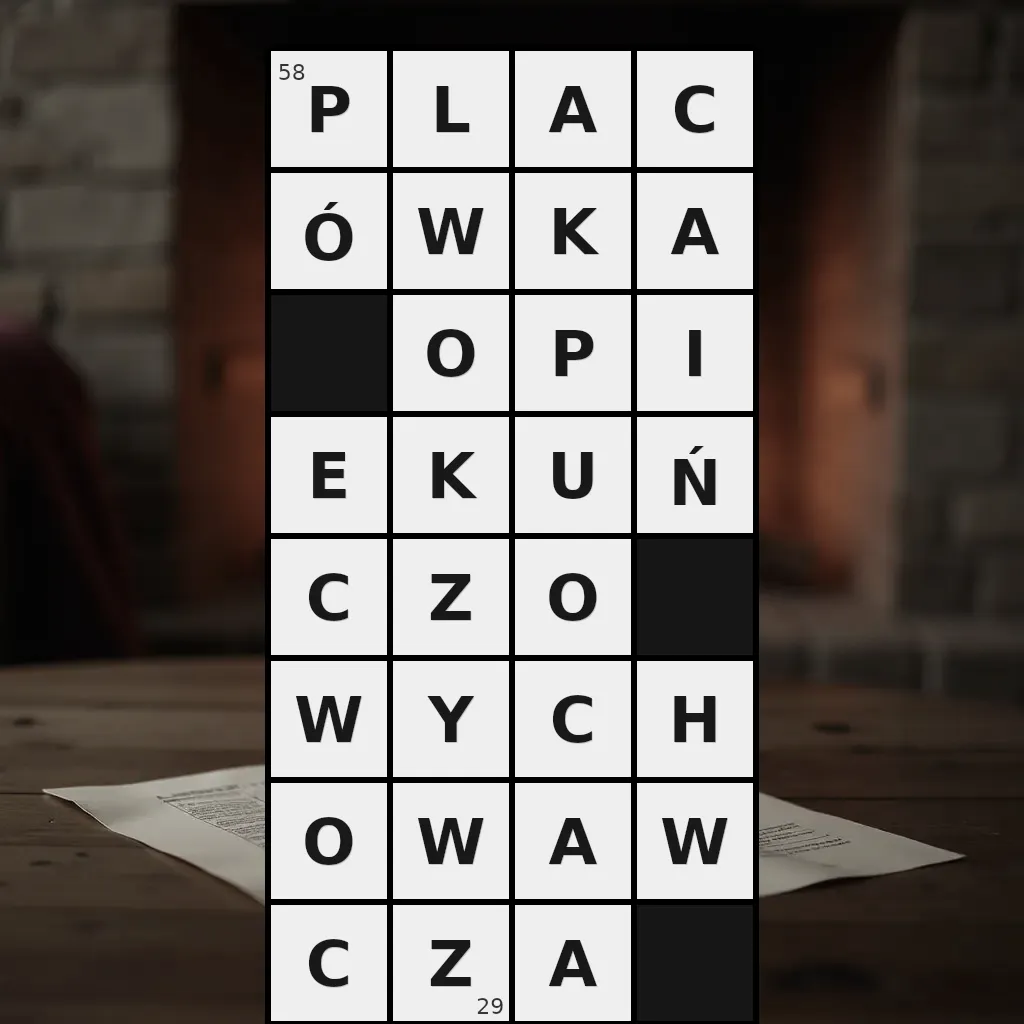 Słowo „placówka opiekuńczo-wychowawcza” ma 29 znaków (bez spacji i łączników).