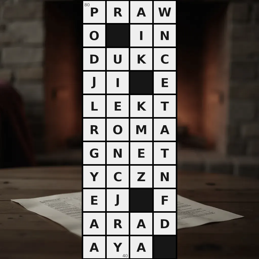 Zawiera litery: A, A, A, A, A, A, C, C, D, D, E, E, E, E, F, G, I, I, J, J, K, K, L, M, N, N, N, O, O, P, R, R, R, T, T, U, W, Y, Y, Z
