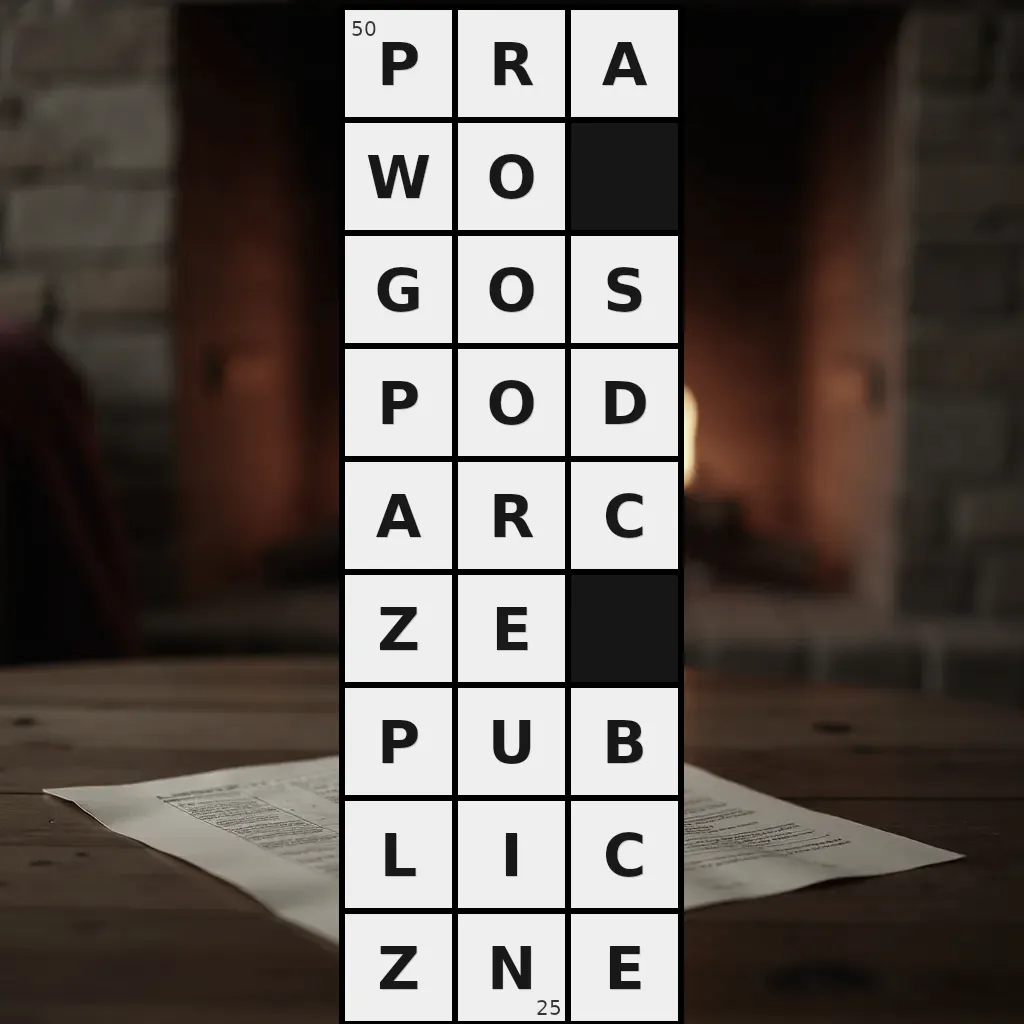 Słowo „prawo gospodarcze publiczne” ma 25 znaków (bez spacji i łączników).