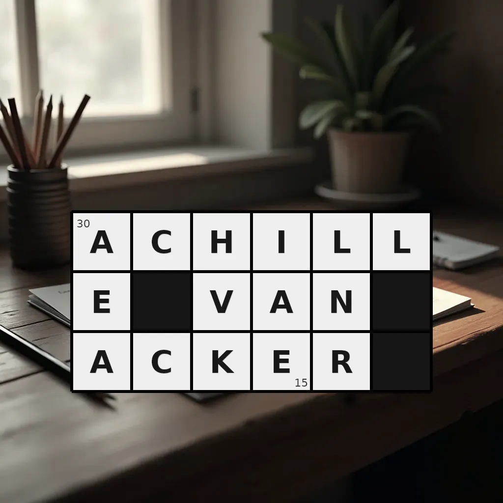 Słowo „achille van acker” ma 15 znaków (bez spacji i łączników).