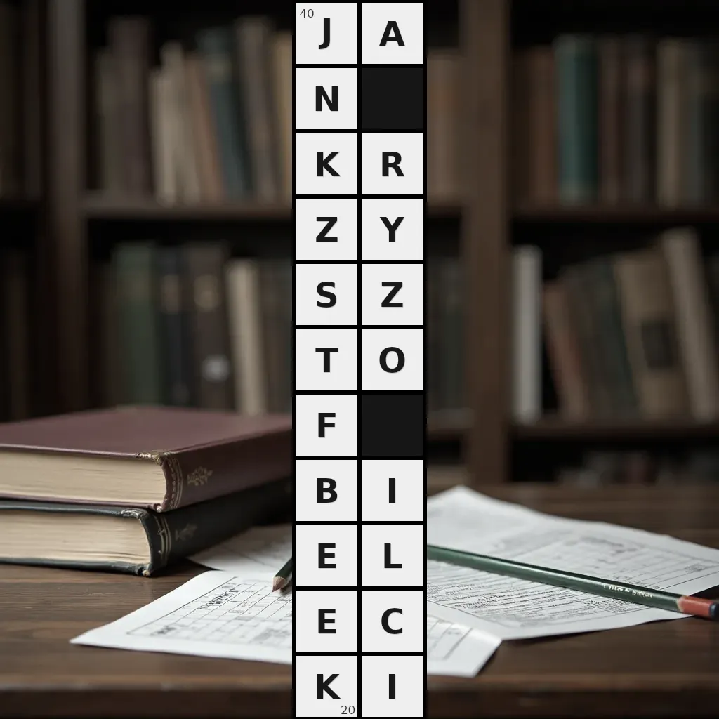 Zawiera litery: A, B, C, E, E, F, I, I, J, K, K, L, N, O, R, S, T, Y, Z, Z