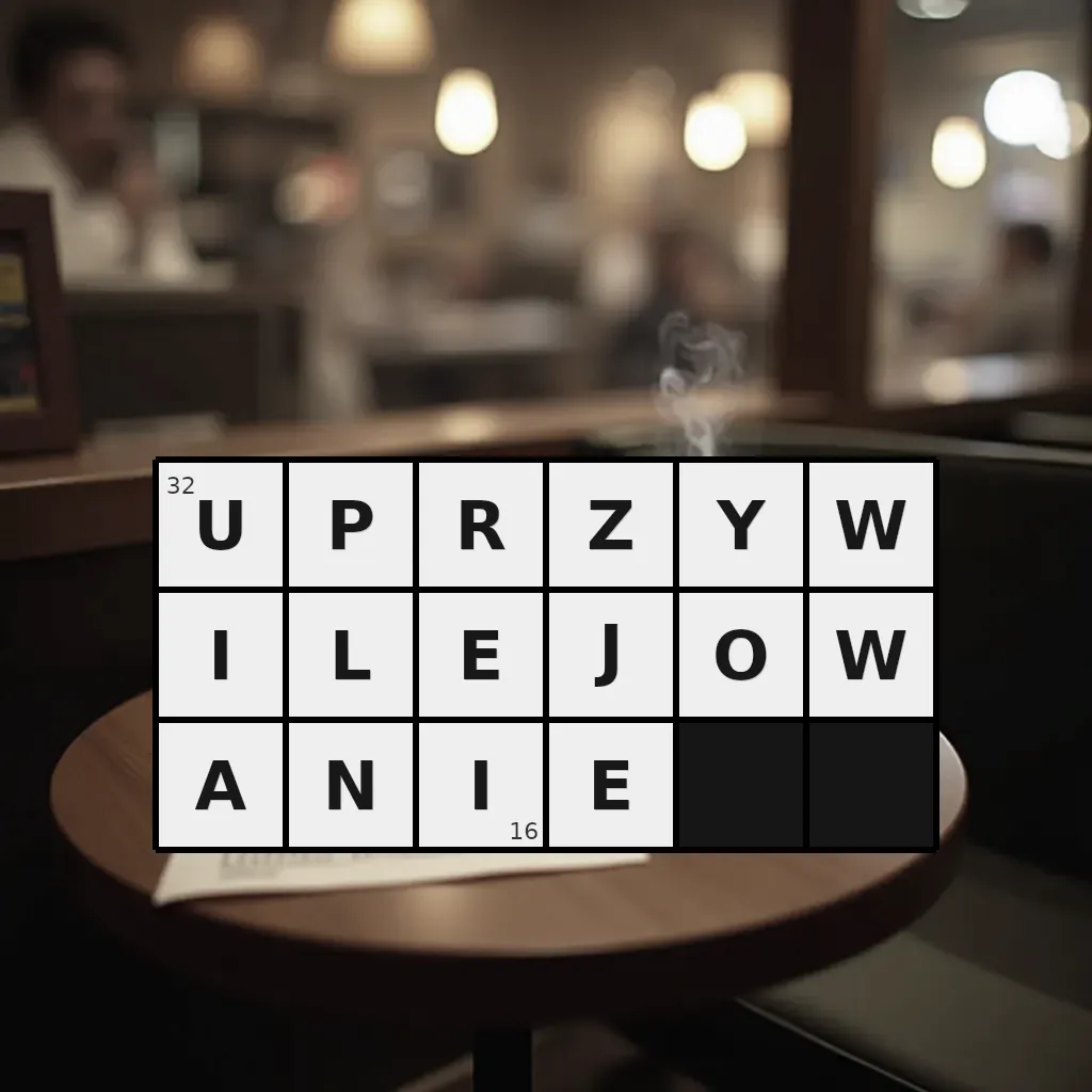 Zawiera litery: A, E, E, I, I, J, L, N, O, P, R, U, W, W, Y, Z