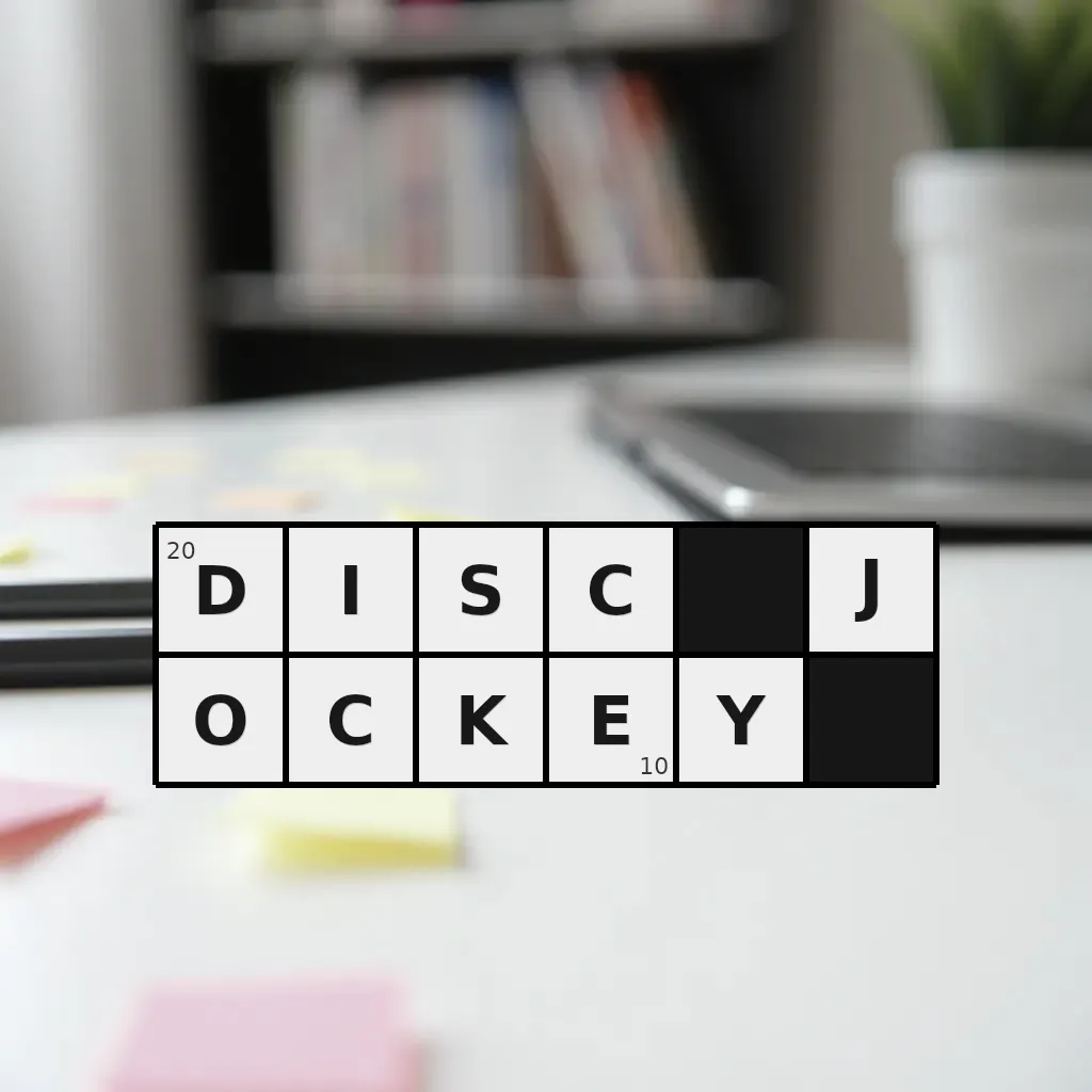 Słowo „disc jockey” ma 10 znaków (bez spacji i łączników).