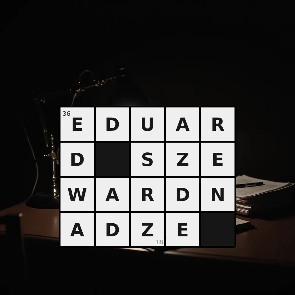Słowo „eduard szewardnadze” ma 18 znaków (bez spacji i łączników).