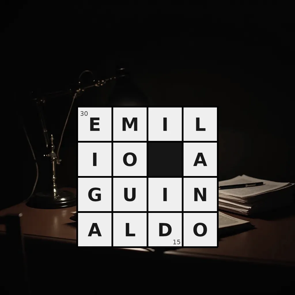 Słowo „emilio aguinaldo” ma 15 znaków (bez spacji i łączników).