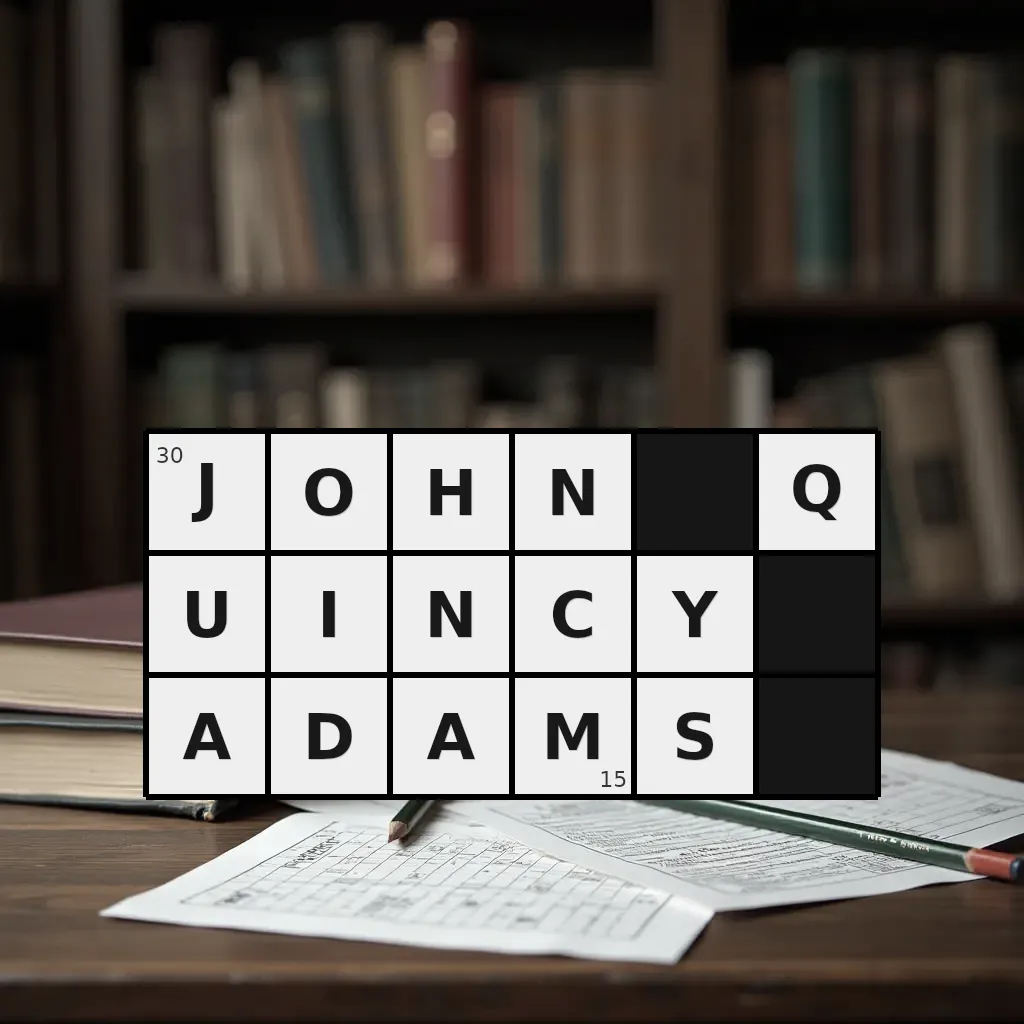 Słowo „john quincy adams” ma 15 znaków (bez spacji i łączników).