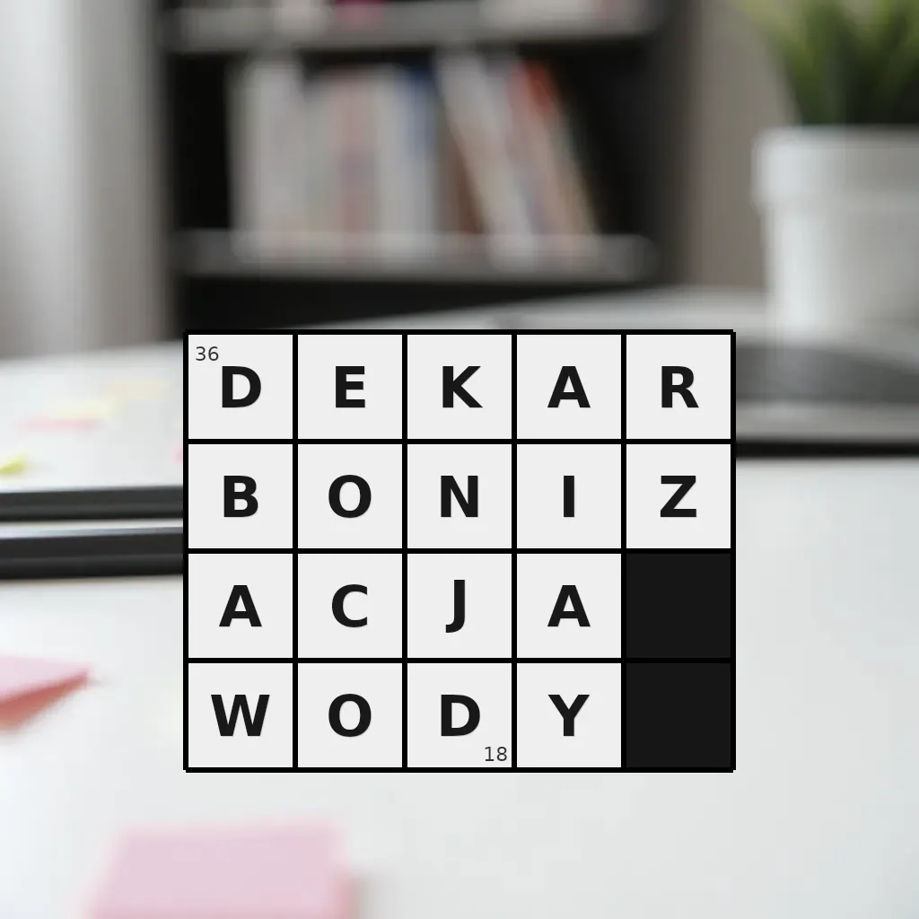 Słowo „dekarbonizacja wody” ma 18 znaków (bez spacji i łączników).