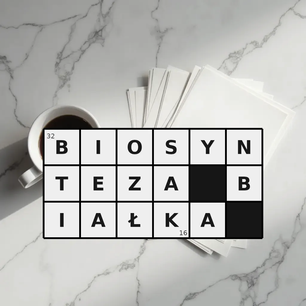 Słowo „biosynteza białka” ma 16 znaków (bez spacji i łączników).