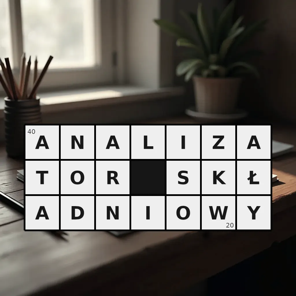 Słowo „analizator składniowy” ma 20 znaków (bez spacji i łączników).