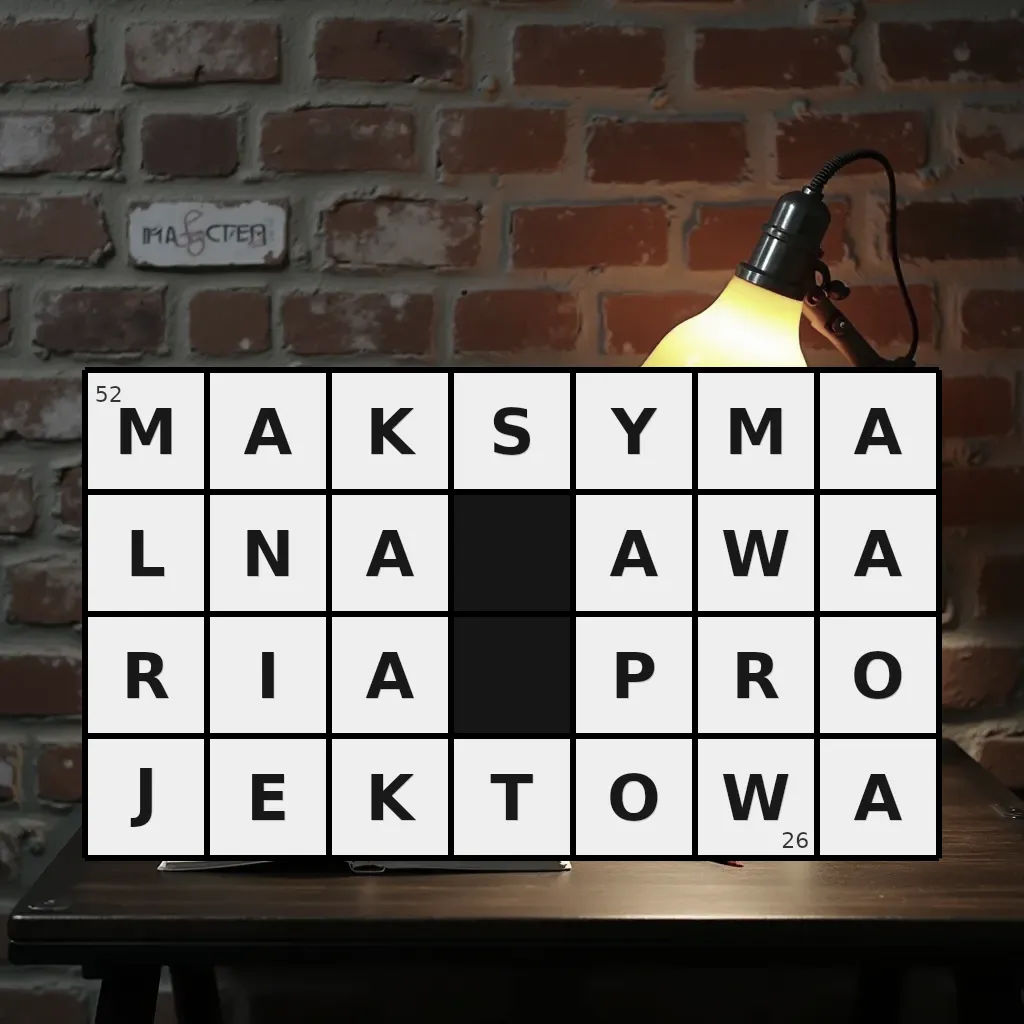 Słowo „maksymalna awaria projektowa” ma 26 znaków (bez spacji i łączników).