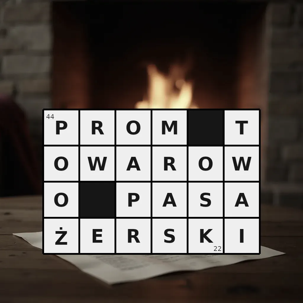 Słowo „prom towarowo-pasażerski” ma 22 znaki (bez spacji i łączników).