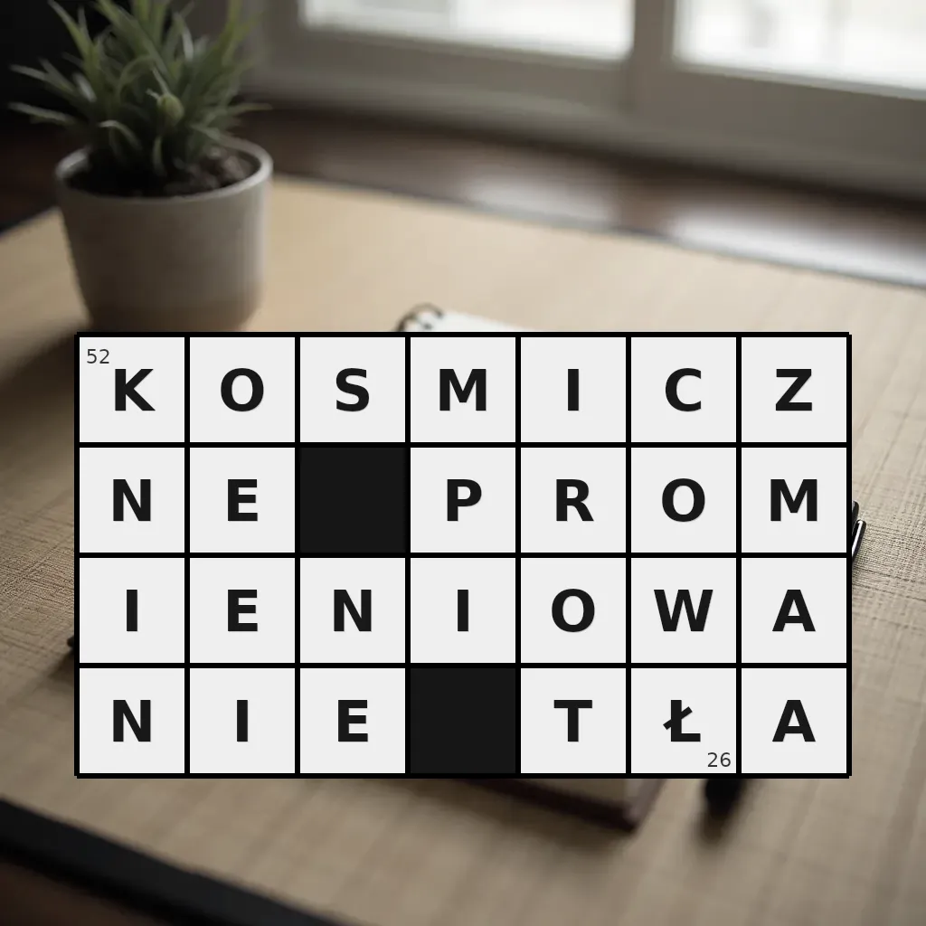 Słowo „kosmiczne promieniowanie tła” ma 26 znaków (bez spacji i łączników).