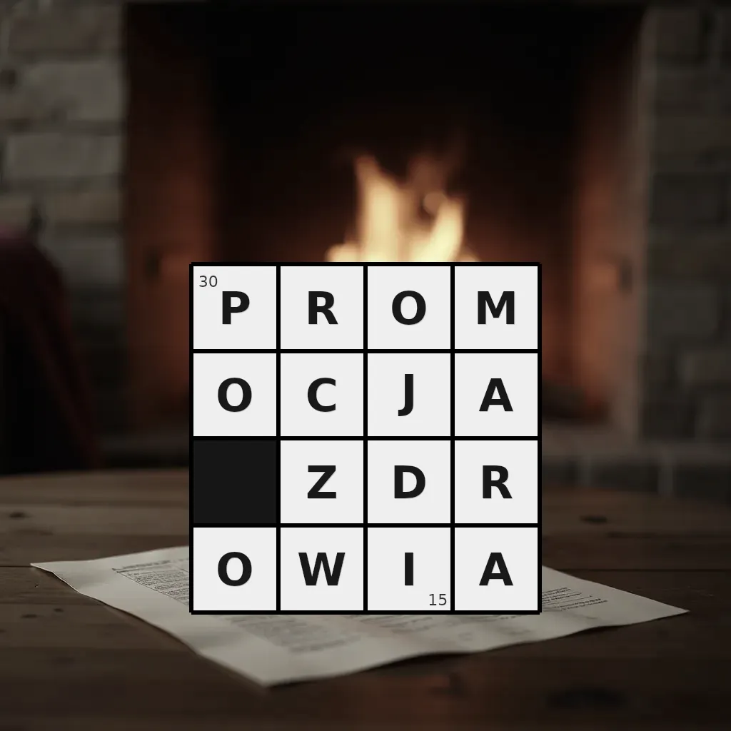 Słowo „promocja zdrowia” ma 15 znaków (bez spacji i łączników).