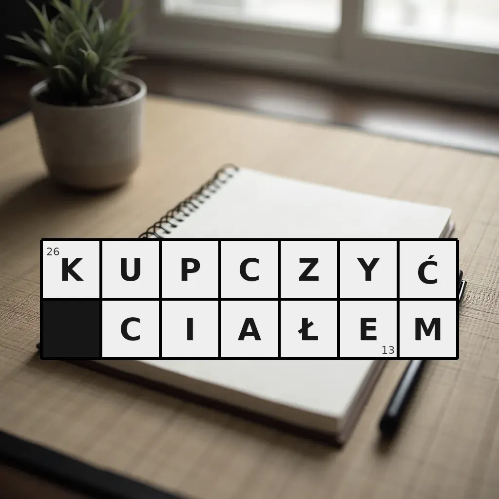 Słowo „kupczyć ciałem” ma 13 znaków (bez spacji i łączników).