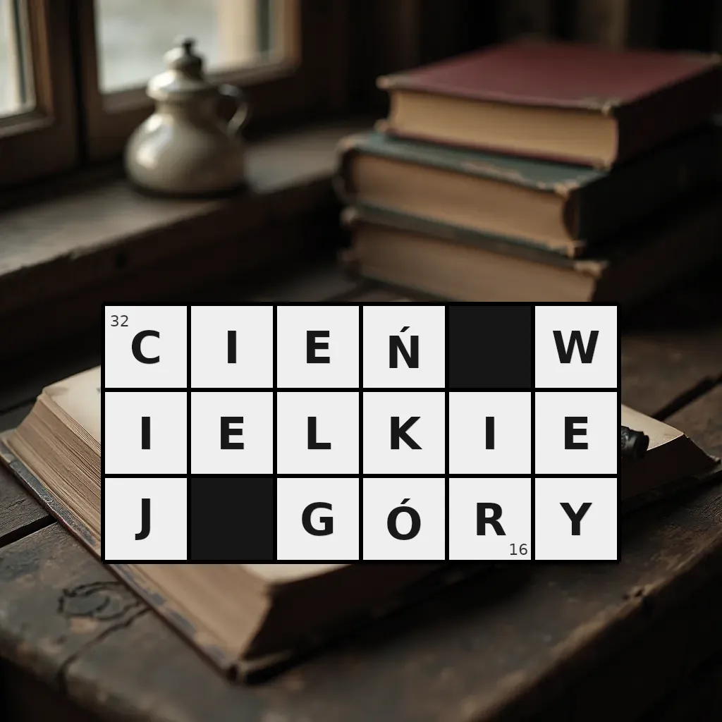 Słowo „cień wielkiej góry” ma 16 znaków (bez spacji i łączników).