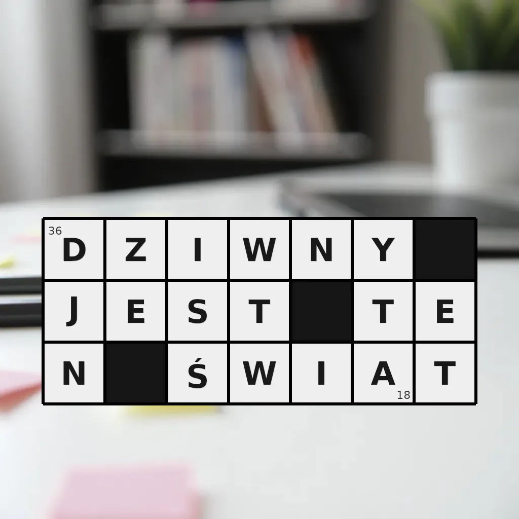 Słowo „dziwny jest ten świat” ma 18 znaków (bez spacji i łączników).