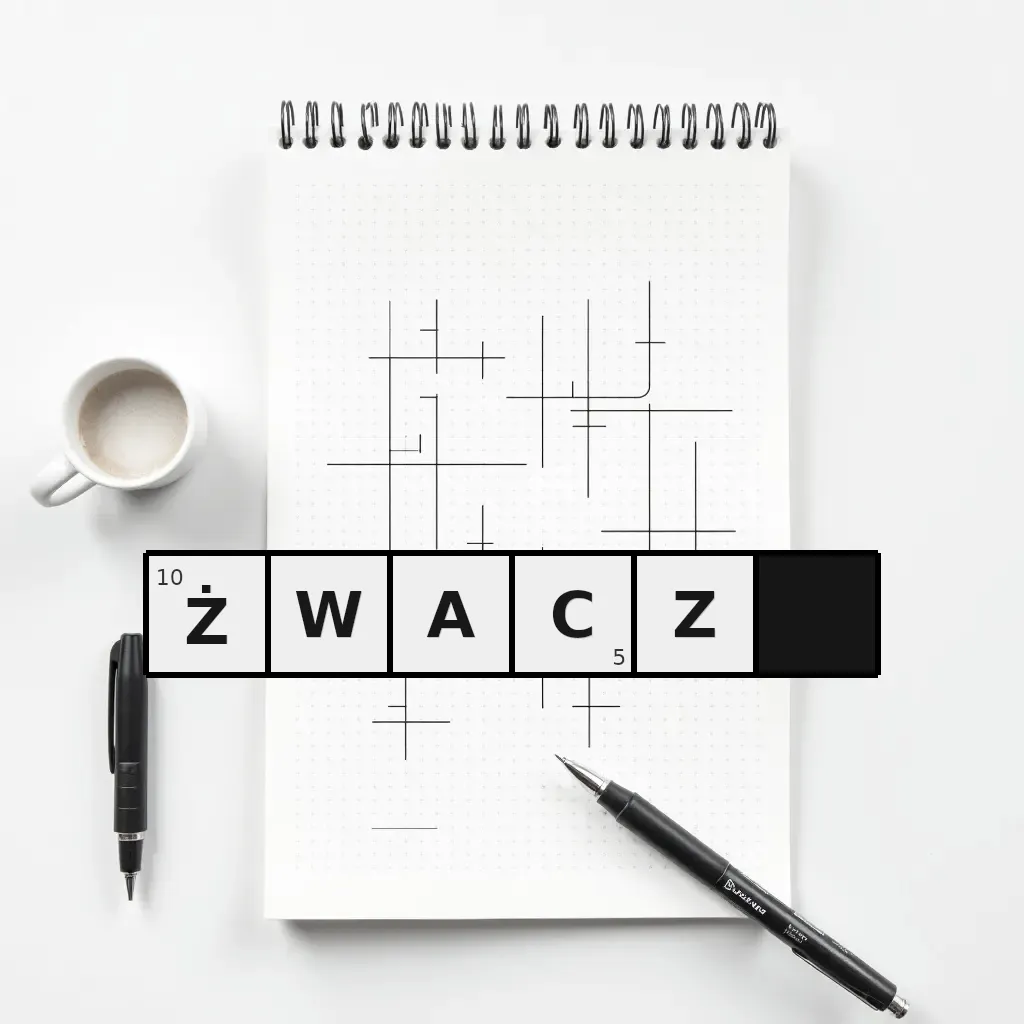 Słowo „żwacz” ma 5 znaków (bez spacji i łączników).