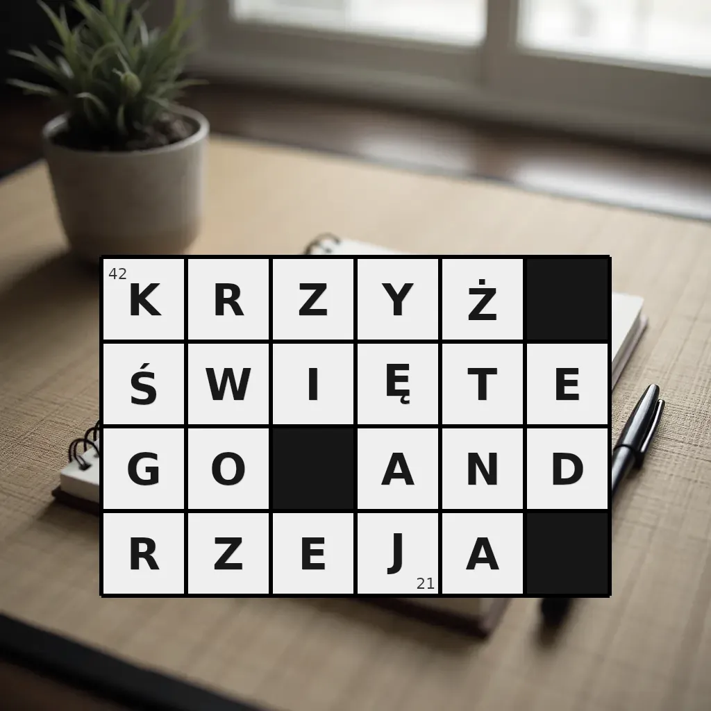 Słowo „krzyż świętego andrzeja” ma 21 znak (bez spacji i łączników).