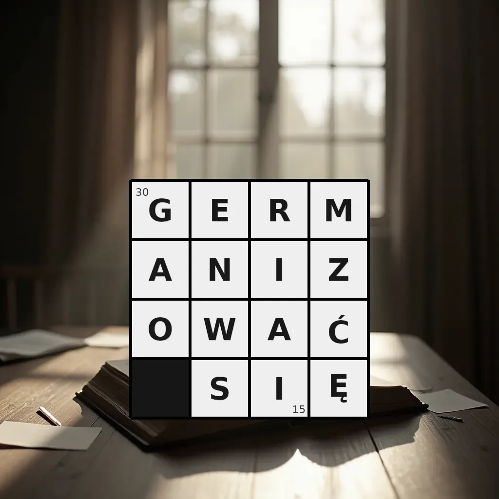Jaka jest najtrafniejsza odpowiedź na hasło „przejmować język kulturę i zwyczaje charakterystyczne dla krajów germańskich”?