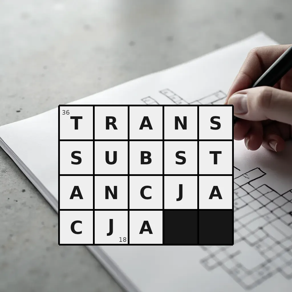 Hasło krzyżówkowe:przemiana chleba i wina w ciało i krew jezusa chrystusa podczas konsekracjipodpowiedzi, synonimy, rozwiązania
