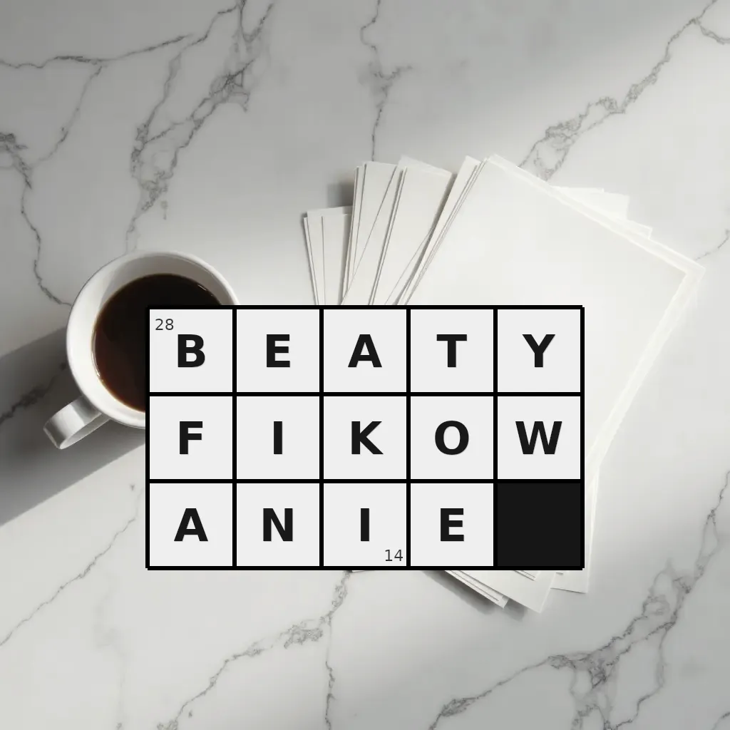 Zawiera litery: A, A, B, E, E, F, I, I, K, N, O, T, W, Y