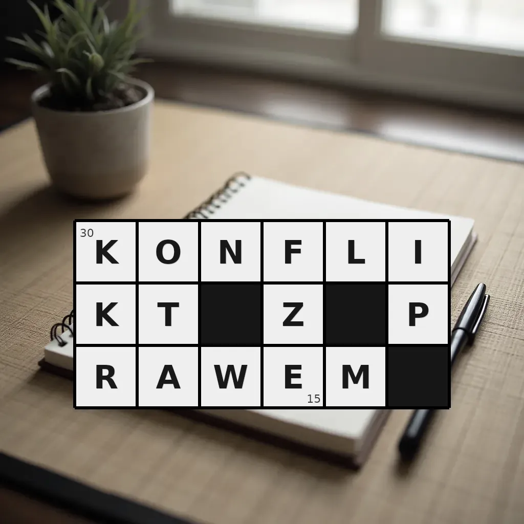 Słowo „konflikt z prawem” ma 15 znaków (bez spacji i łączników).