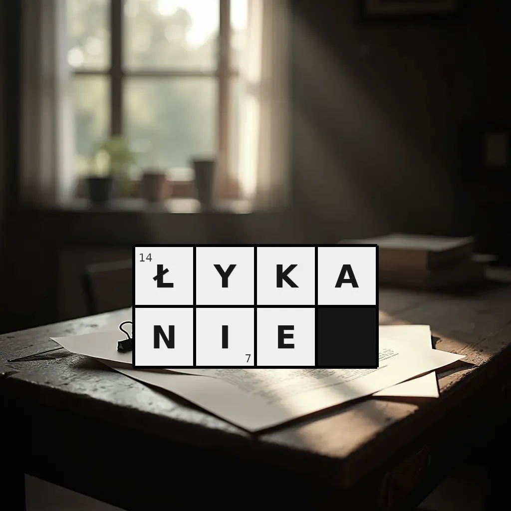 Słowo „łykanie” ma 7 znaków (bez spacji i łączników).