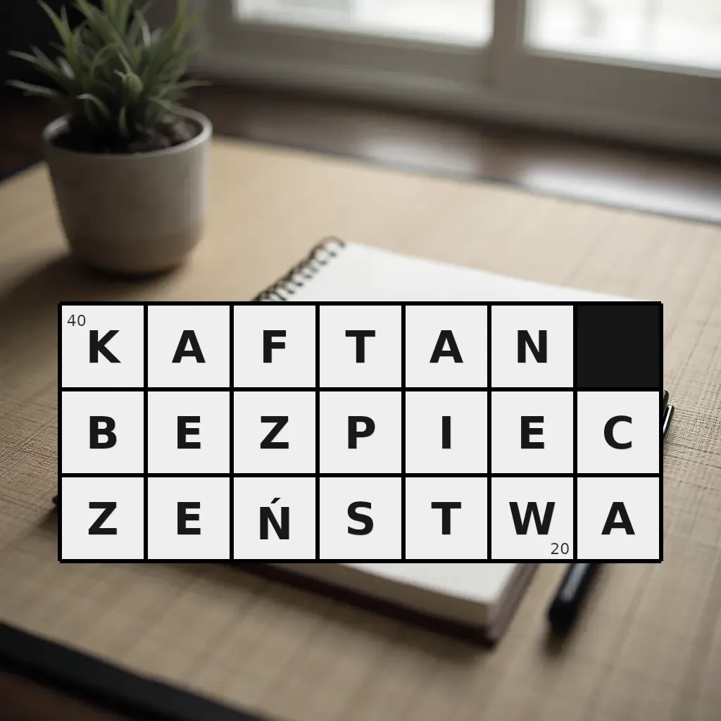 Słowo „kaftan bezpieczeństwa” ma 20 znaków (bez spacji i łączników).