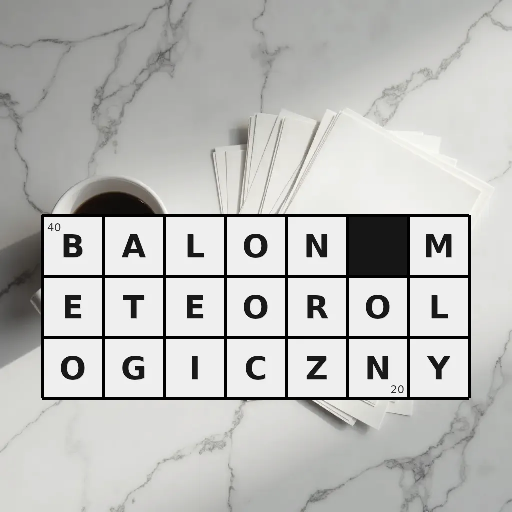 Słowo „balon meteorologiczny” ma 20 znaków (bez spacji i łączników).