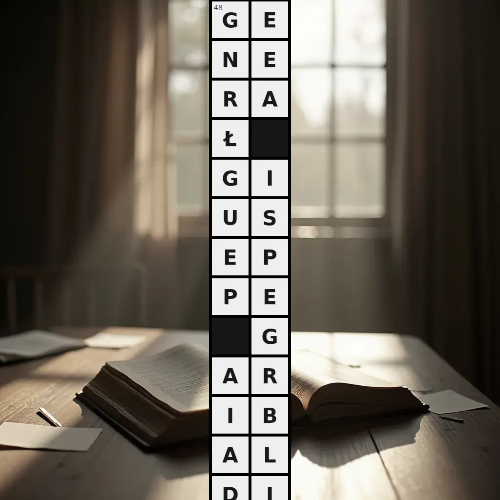 Słowo „generał giuseppe garibaldi” ma 24 znaki (bez spacji i łączników).