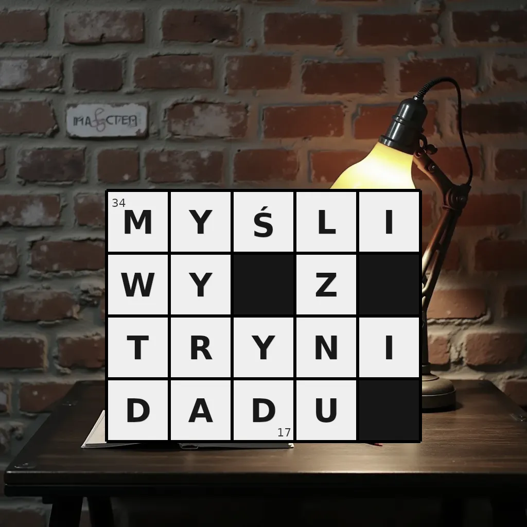 Słowo „myśliwy z trynidadu” ma 17 znaków (bez spacji i łączników).
