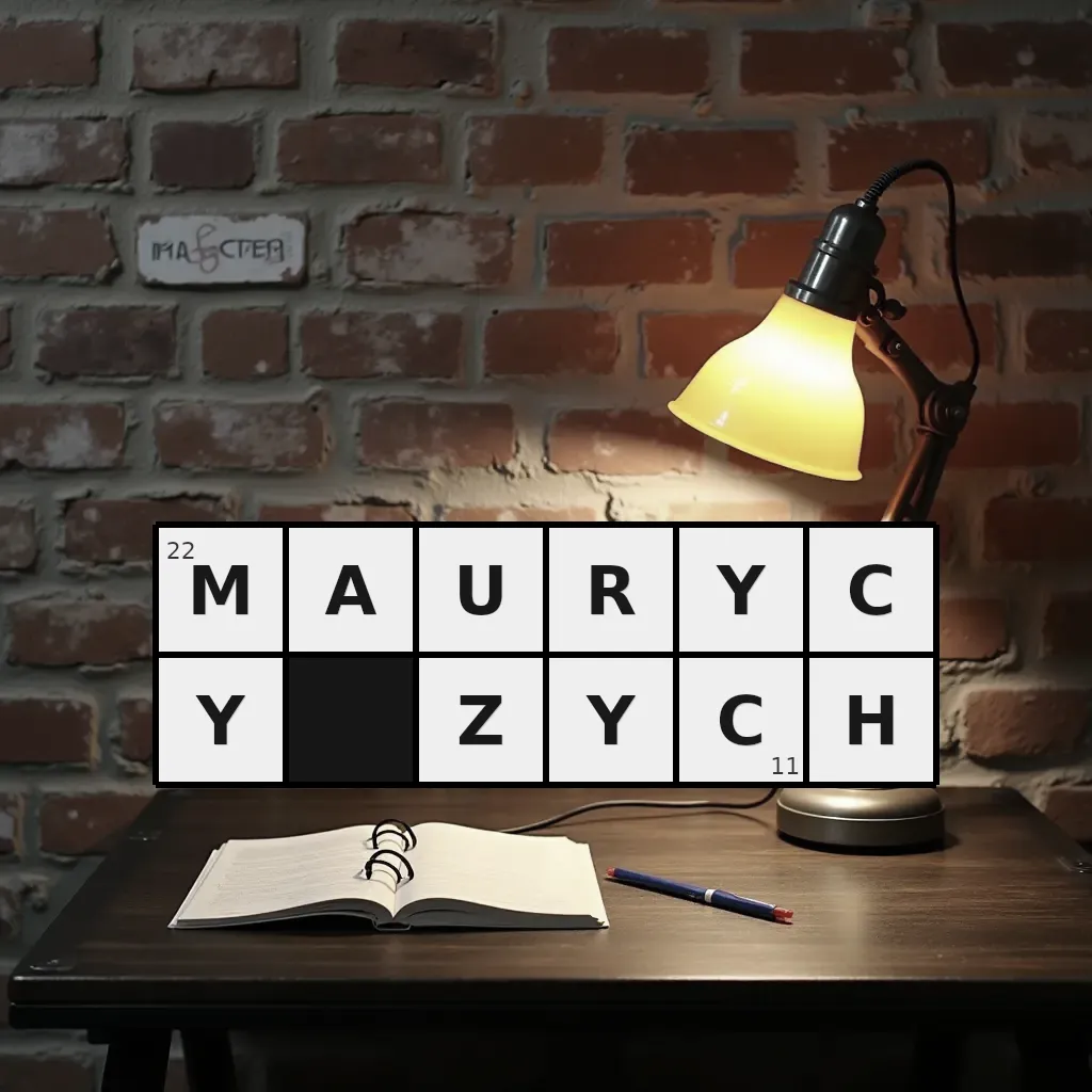 Słowo „maurycy zych” ma 11 znaków (bez spacji i łączników).