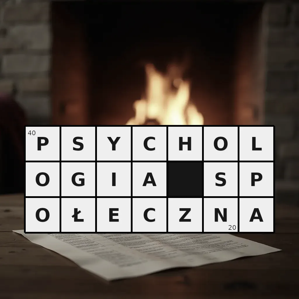 Słowo „psychologia społeczna” ma 20 znaków (bez spacji i łączników).