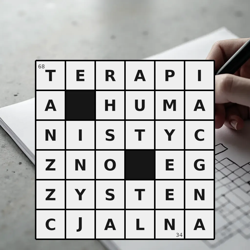 Słowo „terapia humanistyczno-egzystencjalna” ma 34 znaki (bez spacji i łączników).