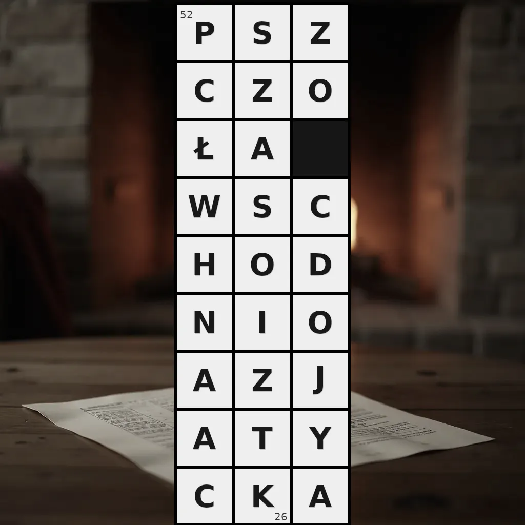 Zawiera litery: A, A, A, A, C, C, C, D, H, I, J, K, N, O, O, O, P, S, S, T, W, Y, Z, Z, Z, Ł