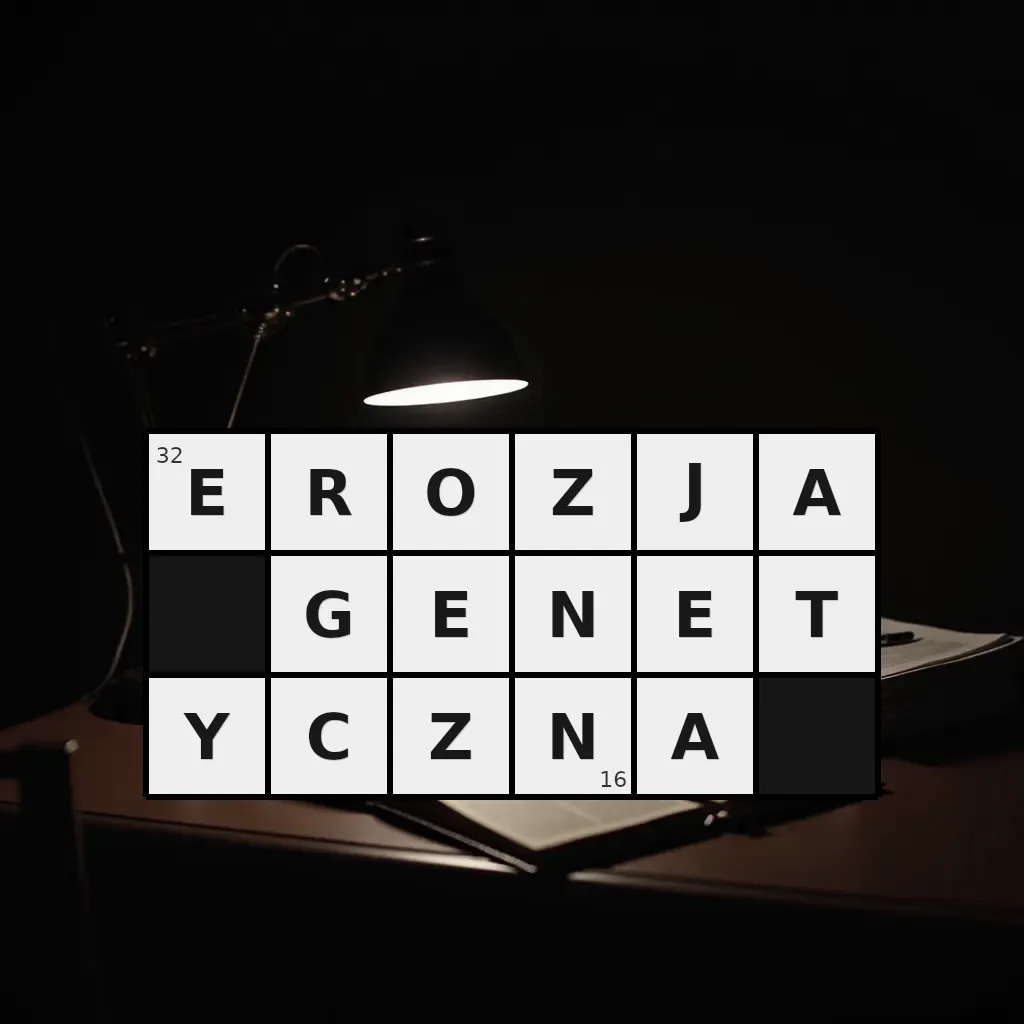 Słowo „erozja genetyczna” ma 16 znaków (bez spacji i łączników).