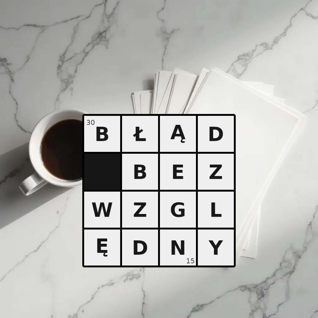 Słowo „błąd bezwzględny” ma 15 znaków (bez spacji i łączników).