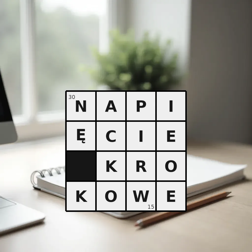 Słowo „napięcie krokowe” ma 15 znaków (bez spacji i łączników).
